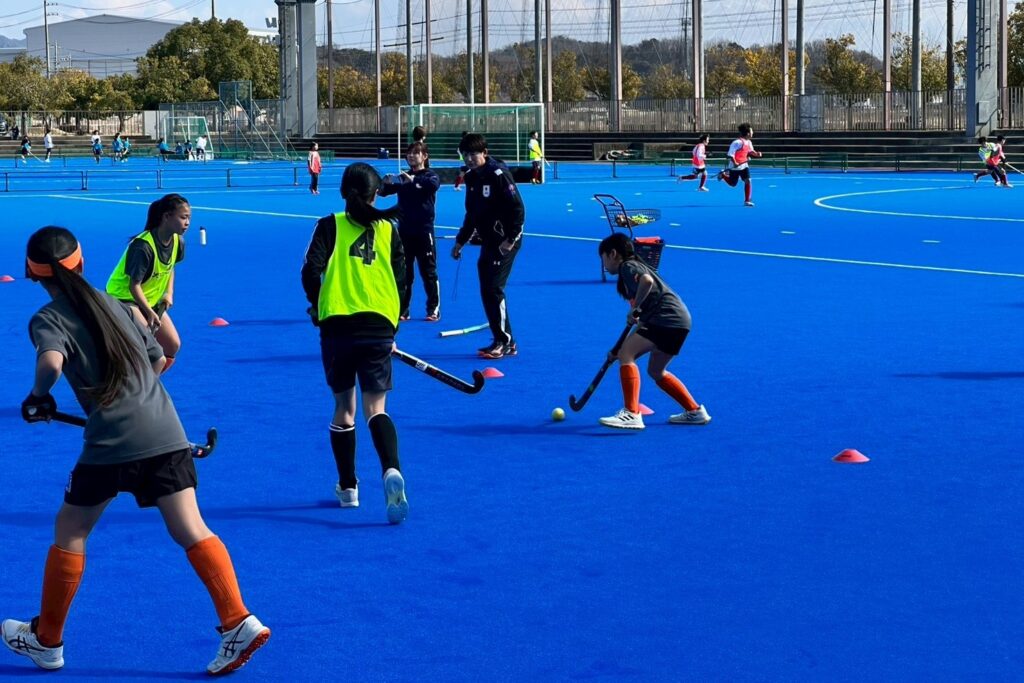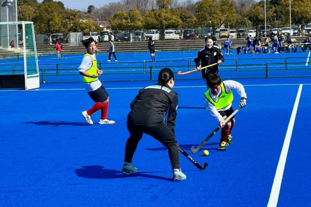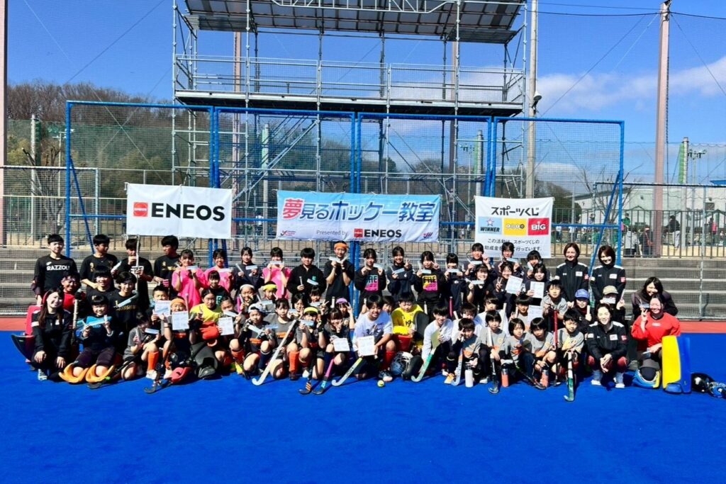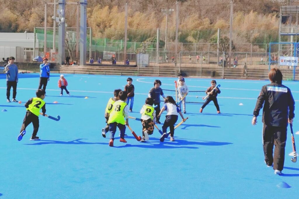 2月22日(日)、川崎重工ホッケースタジアム Aコートにて、日本ホッケー協会主催の「夢見るホッケー教室」が開催されました。午前の部には小学生(経験者)~中学生(経験者・初心者)51名、午後の部には幼児(経験者・初心者)~小学生(初心者)55名が参加しました。当日は、元日本代表選手でオリンピアンの指導のもと、参加者たちは楽しみながらホッケーの魅力に触れていました。未来のオリンピアンがこの中から誕生することを期待しています!